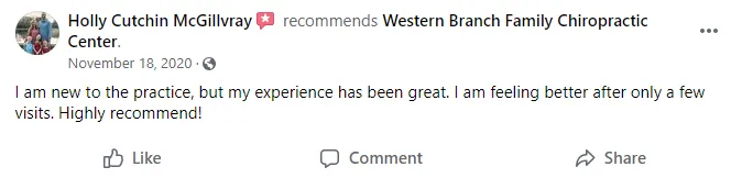 This week we are running a new patient special on Facebook. By submitting your information and calling to immediately schedule an appointment, you’ll receive a consultation, exam, adjustment and report of findings for the special price of $54 ($179 Value!)